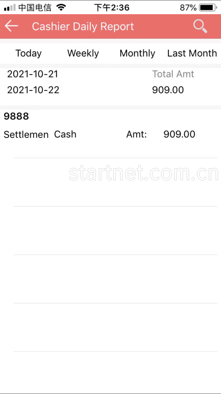 中英文APP端零售管理——收款日报表英文版界面
