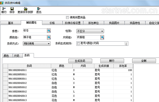 货号款号条码管理,断码查询、会员常用尺码查询、品牌、产地、季节、性别属性等一系列服装行业特色功能。