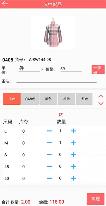 完整的App端进销存功能,包括订货、销售、补货、出入库、盘点等等,全程支持服装行业特色的颜色尺码管理。