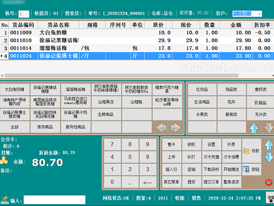 传统零售收银界面适合于超市便利店、服装行业、电子产品等大部分零售收银场景