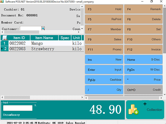 传统零售收银界面(外文版)适合于单词较长的外文版超市便利店、服装行业、电子产品等大部分零售收银场景