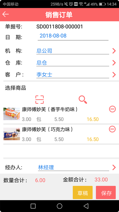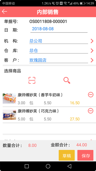App端进销存和仓储功能:移动订单,销售开单,采购开单,代客下单,移动出入库,盘点,验货、拣货、装箱配货等。