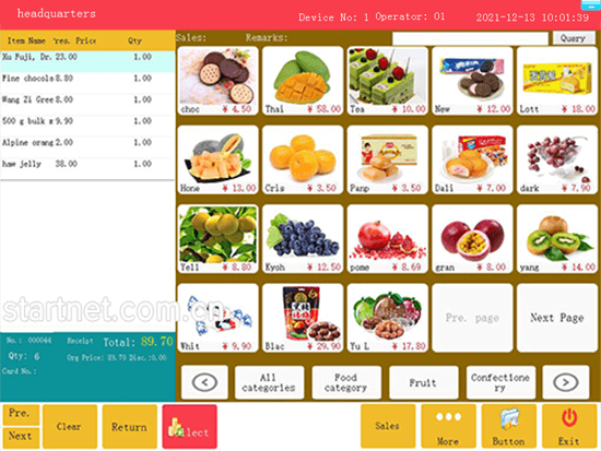 传统零售收银界面(外文版)适合于单词较长的外文版超市便利店、服装行业、电子产品等大部分零售收银场景